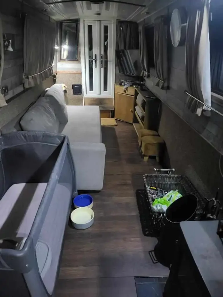 Log burner in the lounge which can heat the whole boat.