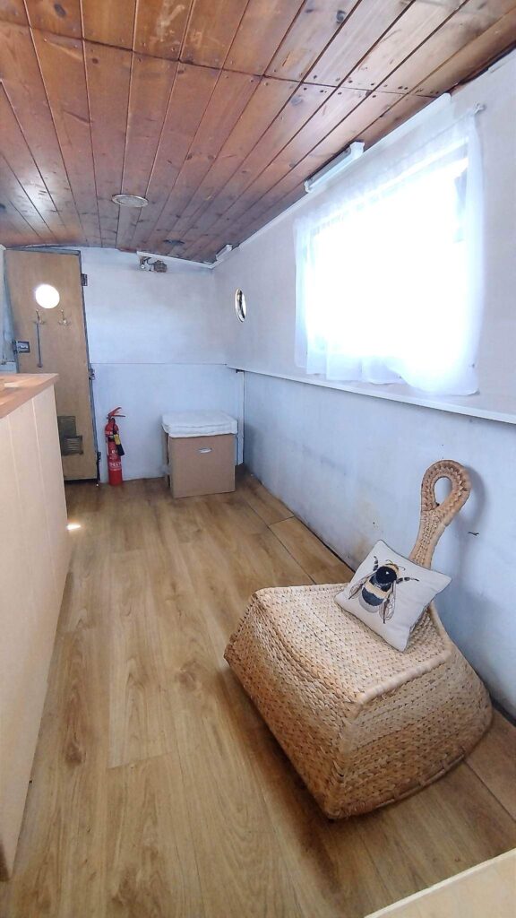 Comes with full safety certificate (just renewed last year, good for 3yrs) It has a gas cooker, seating area, room to sleep (bed coverts to table with storage within. Previously named Maria, renamed Bumblebee when rehomed on the Medway for licensing.